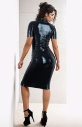 Découvrez la robe Herminia en latex naturel, une pièce à la coupe sévère et provocante qui transcende l'univers fétichiste.